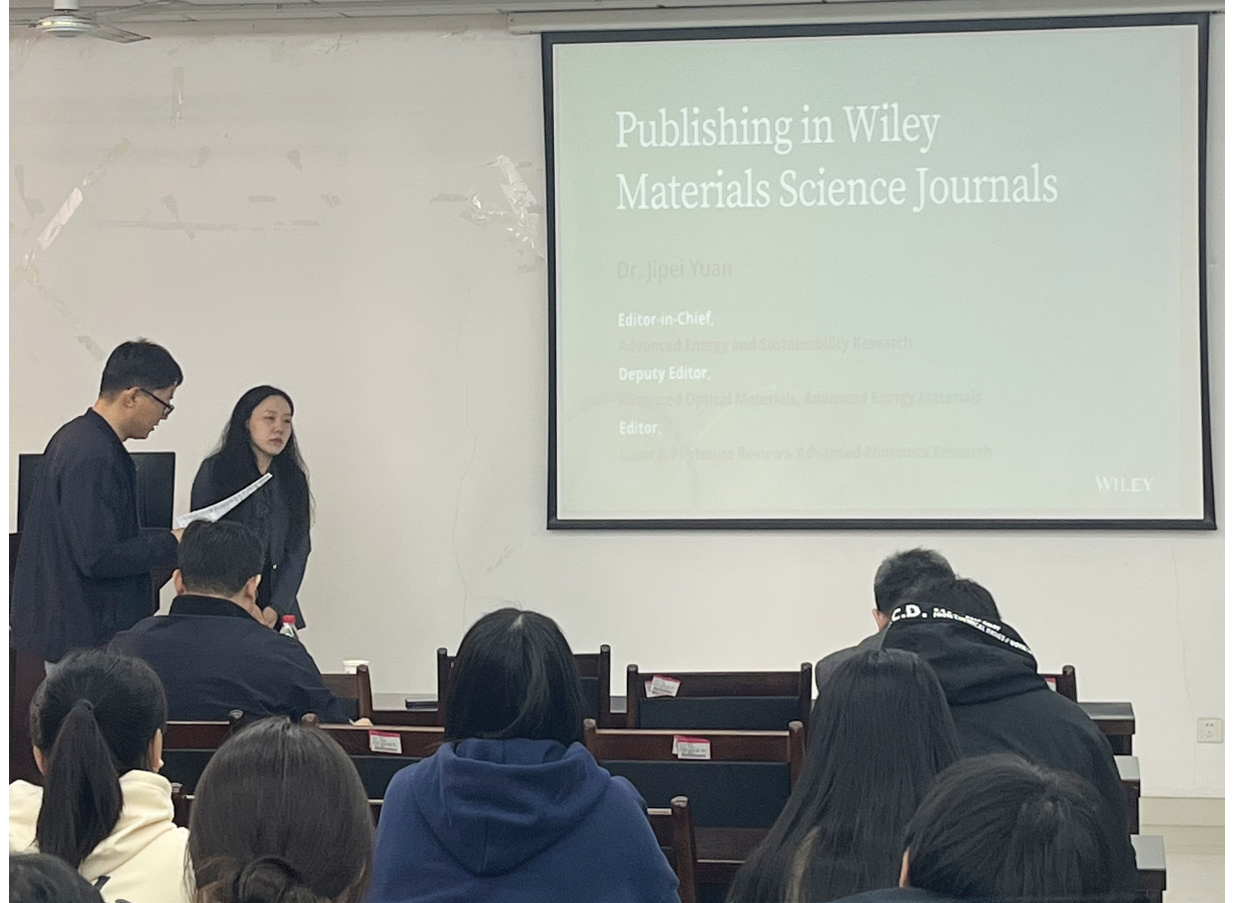 3月7日上午,由济南大学化学化工学院前沿交叉科学研究院周伟家教授和刘宏教授邀请的学术报告,在济南大学逸夫楼A111会议室顺利举行。受邀专家是来自Wiley出版社材料期刊的袁吉培编辑。报告会由济南大学前沿交叉科学研究院副院长周伟家教授主持,前沿交叉科学研究院与相关学院师生参加了本次报告会。