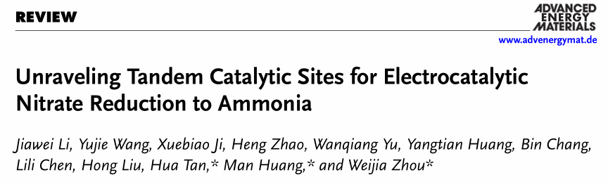 济南大学的周伟家教授团队,在国际知名期刊Advanced Energy Materials上发表题为“Unraveling Tandem Catalytic Sites for Electrocatalytic Nitrate Reduction to Ammonia”的文章。本综述概述了硝酸根还原反应中串联催化剂的常见设计原则与材料分类框架。其次,将这类催化剂分为合金催化剂、异质结构催化剂和单原子催化剂系统分析了代表性实例的具体串联催化过程。再次,我们讨论了硝酸根还原反应的原位及准原位光谱研究,这些研究揭示了串联催化的机理细节。最后,总结了硝酸根还原反应在处理含硝酸根废水、合成氨及发电领域的应用与经济性分析。此外,我们对硝酸根还原反应的未来发展方向进行了展望,包括硝酸根废水处理、氨合成、环境催化液流电池及经济可行性分析。本综述中提出的串联催化位点策略对硝酸根还原反应的发展具有重要的指导意义。